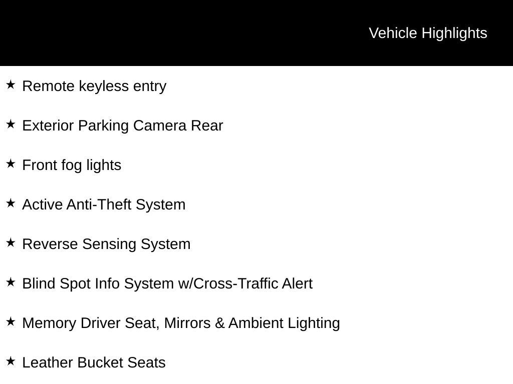 - Blind Spot Info System w/Cross-Traffic Alert