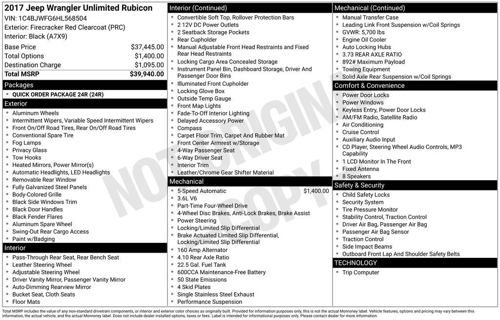 Odometer is 40294 miles below market average! Firecracker Red Clearcoat 2017 Jeep Wrangler Unlimited Rubicon 4WD 5-Speed Automatic 3.6L V6 24V VVT Low Miles!!!, Local Trade!!!, Custom Soft Top, Custom Lift!!!, Oversized Wheels and Tires!!, Custom Steel Bumper with Winch!!!, Wrangler Unlimited Rubicon, 4D Sport Utility, 4WD, Alloy wheels, Audio Jack Input for Mobile Devices, Brake assist, Electronic Stability Control, Front fog lights, Fully automatic headlights, Performance Suspension, Quick Order Package 24R, Radio data system, Remote keyless entry, Security system, Speed control, Steering wheel mounted audio controls, Traction control.