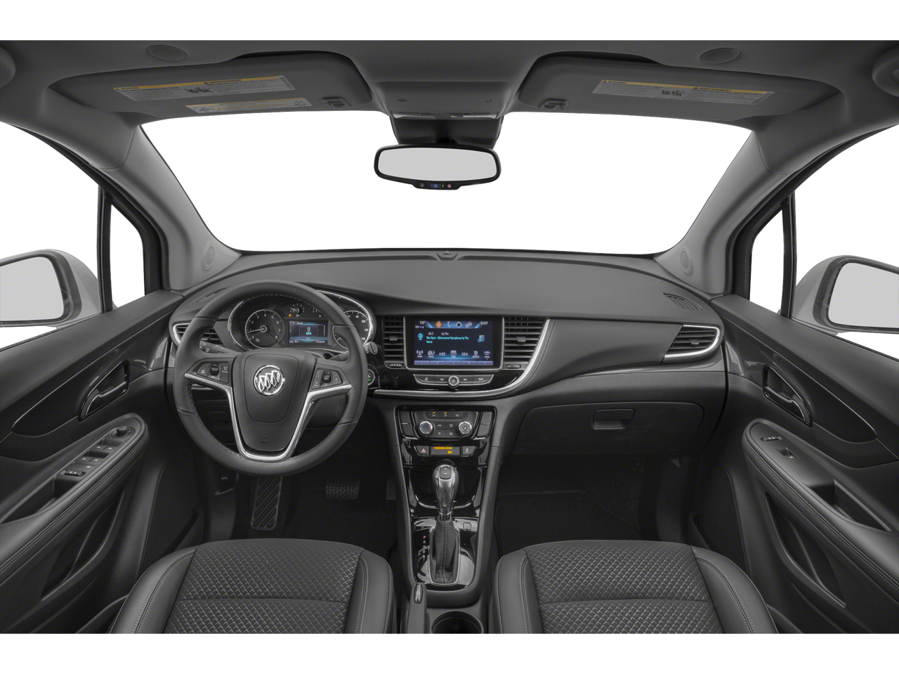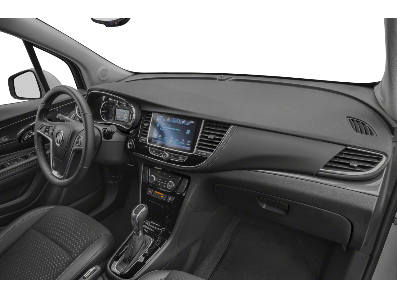 This Encore is well equipped with Preferred Equipment Group 1SB, 2-Way Manual Front Passenger Seat Adjuster, 3.53 Final Drive Axle Ratio, 4-Wheel Disc Brakes, 6 Speakers, 6-Speaker Audio System, 6-Way Power Driver Seat Adjuster, ABS brakes, Air Conditioning, Alloy wheels, AM/FM radio: SiriusXM, Apple CarPlay/Android Auto, Brake assist, Bumpers: body-color, Cloth w/Leatherette Seat Trim, Compass, Delay-off headlights, Driver door bin, Driver vanity mirror, Driver's Seat Mounted Armrest, Dual front impact airbags, Dual front side impact airbags, Electronic Stability Control, Emergency communication system: OnStar and Buick connected services capable, Exterior Parking Camera Rear, Front anti-roll bar, Front Bucket Seats, Front License Plate Bracket, Front reading lights, Front wheel independent suspension, Fully automatic headlights, Heated door mirrors, Illuminated entry, Knee airbag, Low tire pressure warning, Occupant sensing airbag, Outside temperature display, Overhead airbag, Panic alarm, Passenger door bin, Passenger vanity mirror, Power door mirrors, Power driver seat, Power steering, Power windows, Radio data system, Radio: Buick Infotainment System AM/FM Stereo, Rear seat center armrest, Rear side impact airbag, Rear window defroster, Rear window wiper, Remote keyless entry, Remote Vehicle Starter System, Ride & Handling Suspension, Roof rack: rails only, Security system, SiriusXM Radio, Speed control, Speed-sensing steering, Split folding rear seat, Spoiler, Steering wheel mounted audio controls, Tachometer, Telescoping steering wheel, Tilt steering wheel, Traction control, Trip computer, Turn signal indicator mirrors, Variably intermittent wipers, and Wheels: 18 Machined-Face Alloy.