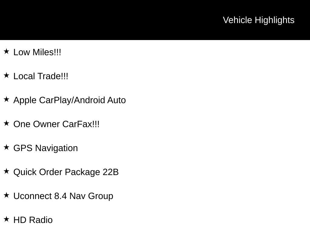- Radio: Uconnect 4C Nav w/8.4" Display