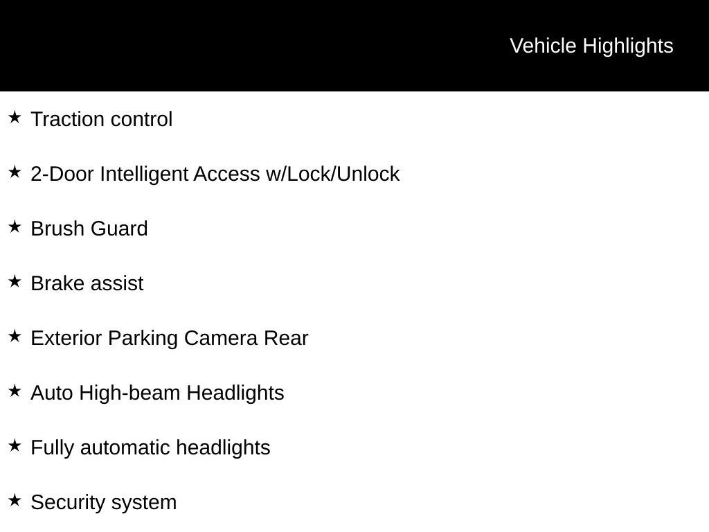 - 4-Wheel Disc Brakes w/4-Wheel ABS, Front And Rear Vented Discs, Brake Assist, Hill Descent Control, Hill Hold Control and Electric Parking Brake