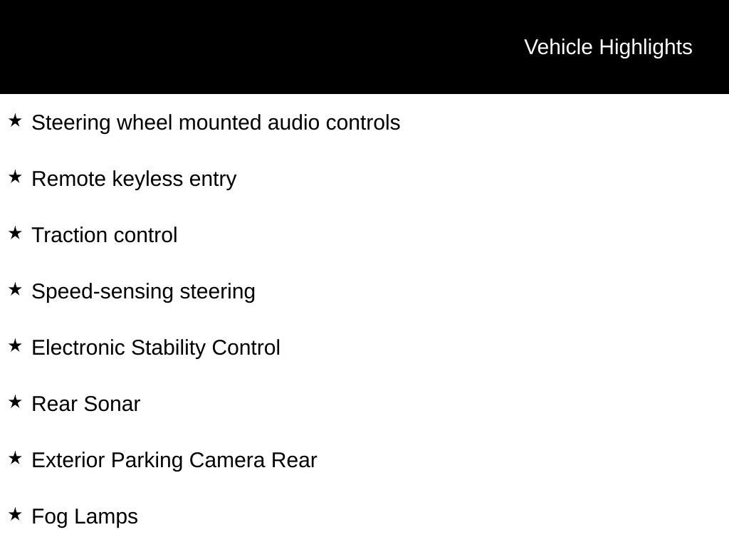 - Radio: AM/FM/AUX Audio System w/6 Speakers