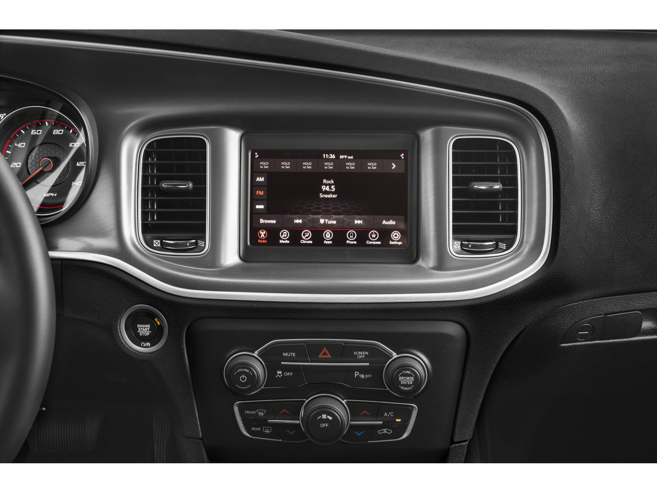 This Charger is well equipped with Alloy wheels, Apple CarPlay, Cloth Sport Seat, Front Bucket Seats, ParkView Rear Back-Up Camera, Power 8-Way Driver Seat, Steering wheel mounted audio controls, Traction control, 4-Wheel Disc Brakes, 6 Speakers, ABS brakes, Air Conditioning, AM/FM radio: SiriusXM, Anti-whiplash front head restraints, Apple CarPlay/Android Auto, Body Color Exterior Mirrors, Brake assist, Bumpers: body-color, Compass, Delay-off headlights, Driver door bin, Driver vanity mirror, Dual front impact airbags, Dual front side impact airbags, Electronic Stability Control, Four wheel independent suspension, Front anti-roll bar, Front Center Armrest, Front dual zone A/C, Front reading lights, Fully automatic headlights, Google Android Auto, GPS Antenna Input, Illuminated entry, Integrated Center Stack Radio, Integrated Voice Command w/Bluetooth®, Knee airbag, Leather Shift Knob, Low tire pressure warning, Media Hub (2 USB, AUX), Occupant sensing airbag, Outside temperature display, Overhead airbag, Overhead console, Panic alarm, Passenger door bin, Passenger vanity mirror, Power 2-Way Driver Lumbar Adjust, Power door mirrors, Power driver seat, Power steering, Power windows, Radio: Uconnect 4 w/7 Display, Rear anti-roll bar, Rear Armrest w/Cupholder Seat, Rear reading lights, Rear seat center armrest, Rear window defroster, Remote keyless entry, Speed control, Speed-Sensitive Wipers, Split folding rear seat, Tachometer, Telescoping steering wheel, Tilt steering wheel, Trip computer, USB Host Flip, Variably intermittent wipers, and Wheels: 17 x 7 Painted Cast Aluminum.