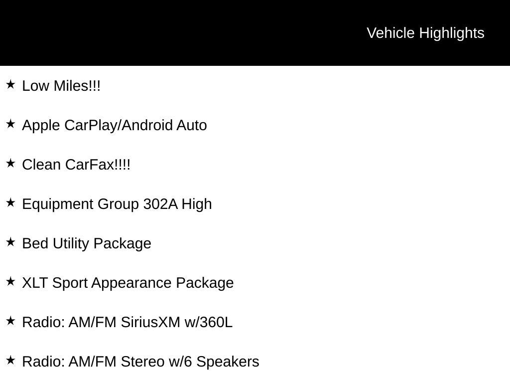 This F-150 XLT is packed with premium features that elevate your driving experience. The power-sliding rear window, twin panel moonroof, and interior work surface provide added convenience and versatility. The Bed Utility Package, with its BoxLink, premium locking cleats, and Zone Lighting, ensures you can easily organize and access your cargo.