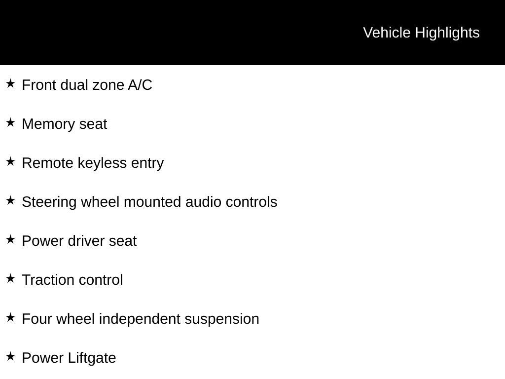 - 4-Wheel Disc Brakes w/4-Wheel ABS, Front Vented Discs, Brake Assist, Hill Hold Control and Electric Parking Brake