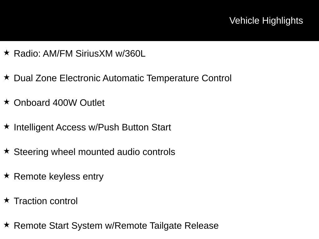 - Remote Start System w/Remote Tailgate Release