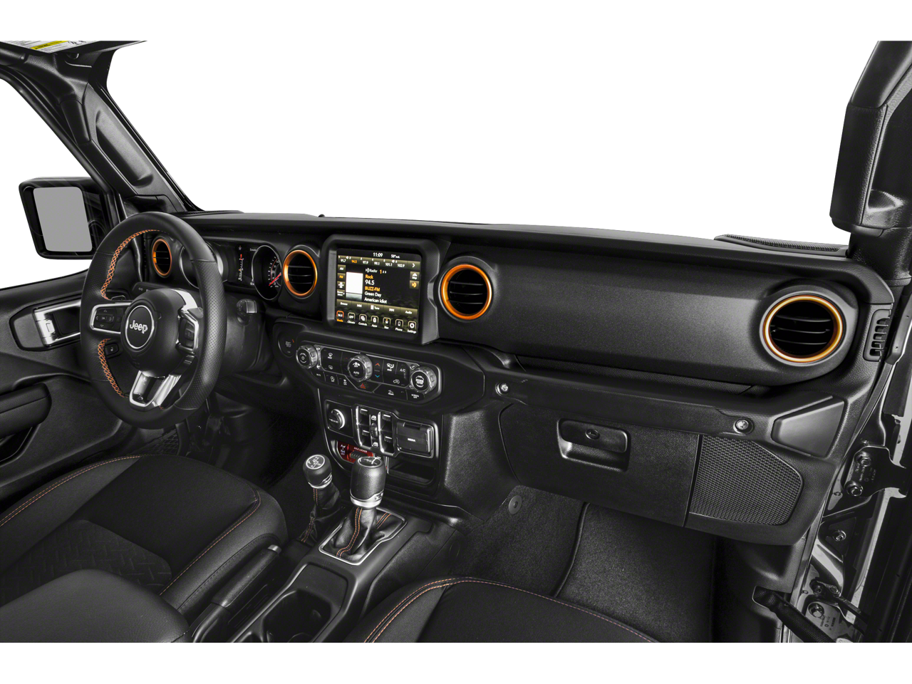 The Gladiator Mojave's striking green exterior and bold, distinctive styling make it a standout on the road. Step inside and you'll be greeted by a well-appointed interior, featuring premium cloth seats with sport bolsters, a user-friendly Uconnect 4C Nav system, and a host of advanced safety and convenience technologies.