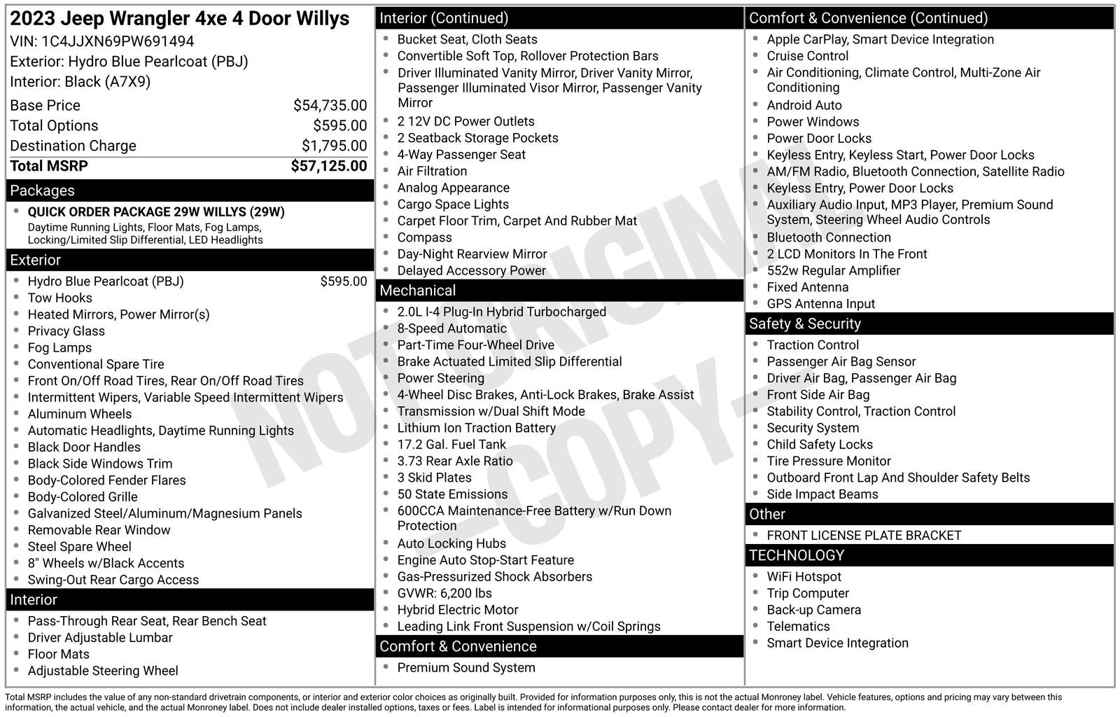 1 Owner CarFax!, Low Miles!!!, Wrangler Willys 4xe, 4D Sport Utility, 4WD, Hydro Blue Pearl Coat, 4xe 4-Wheel Drive Swing Gate Decal, 97 MPH Vehicle Max Speed Calibration, ABS brakes, AM/FM radio: SiriusXM, Anti-Spin Differential Rear Axle, Apple CarPlay, Apple CarPlay/Android Auto, Black Grille, Brake assist, Electronic Stability Control, Front fog lights, Front LED Fog Lamps, Fully automatic headlights, Google Android Auto, Heated door mirrors, LED Headlamp & Fog Lamp Group, LED Premium Reflector Headlamps, Molded-In-Color Fender Flares (2-Piece), ParkView Rear Back-Up Camera, Passenger door bin, Quick Order Package 29W Willys, Radio: Uconnect 4 w/7 Display, Remote keyless entry, Security system, Speed control, Steering wheel mounted audio controls, Traction control, Wheels: 17 x 7.5 Black Aluminum, Willys, Willys 4xe Hood Decal. Priced below KBB Fair Purchase Price!