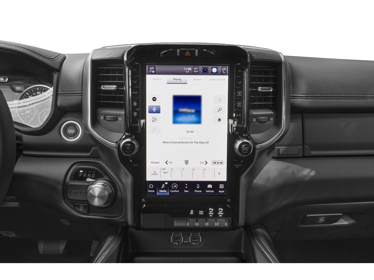 ** LEATHER **, ** PANO ROOF **, 1500 Laramie, 4D Crew Cab, HEMI 5.7L V8 Multi Displacement VVT eTorque, 8-Speed Automatic, 4WD, Bright White Clearcoat, Black w/Premium Leather Trimmed Bucket Seats, 12 Touchscreen Display, 2nd Row In Floor Storage Bins, 4G LTE Wi-Fi Hot Spot, Apple CarPlay, Apple CarPlay/Android Auto, Auto High Beam Headlamp Control, Black Interior Accents, Blind Spot & Cross Path Detection, Body Color Exterior Mirrors, Body Color Front Bumper, Body Color Premium Power Mirrors, Body Color Rear Bumper w/Step Pads, Class IV Receiver Hitch, Connected Travel & Traffic Services, Connectivity - US/Canada, Disassociated Touchscreen Display, Electric Shift-On-Demand Transfer Case, Foam Bottle Insert (Door Trim Panel), For Details, Visit DriveUconnect.com, For More Info, Call 800-643-2112, Front Door Accent Lighting, Front LED Fog Lamps, Global Telematics Box Module (TBM), Google Android Auto, GPS Antenna Input, GPS Navigation, Grille Surround 3 Body Color Tex 2 Black, HD Radio, Heated front seats, Integrated Center Stack Radio, Integrated Voice Command w/Bluetooth®, Laramie Level 1 Equipment Group, LED Reflector Headlamps, Navigation System, ParkSense Front/Rear Park Assist w/Stop, Power 8-Way Driver & Passenger Seats, Radio: Uconnect 5 Nav w/12.0 Display, Rain Sensitive Windshield Wipers, RAM Grille Badge - Chrome, Rear Door Accent Lighting, Rear Power Sliding Window, Rear Window Defroster, Remote Tailgate Release, SiriusXM Radio Service, SiriusXM w/360L, Sport Appearance Package, Sport Decal, Sport Performance Hood, USB Host Flip, Wheels: 20 x 9 Premium Painted w/Inserts, #1 Seat Foam Cushion, 10 Speakers, 3 Rear Seat Head Restraints, 3.21 Rear Axle Ratio, 4 Way Front Headrests, 4-Wheel Disc Brakes, 48V Belt Starter Generator, ABS brakes, Adjustable pedals, Air Conditioning, Alloy wheels, AM/FM radio: SiriusXM with 360L, Anti-Spin Differential Rear Axle, Audio memory, Auto-dimming door mirrors, Auto-Dimming Exterior Driver Mirror, Auto-dimming Rear-View mirror, Automatic temperature control, Brake assist, Bumpers: chrome, Chrome Exterior Mirrors, Compass, Convex Wide-Angle Exterior Mirror Insert, Delay-off headlights, Dome Dual LED Reading Lamp, Driver door bin, Driver Seat Memory, Driver vanity mirror, Dual front impact airbags, Dual front side impact airbags, Dual-Pane Panoramic Sunroof, Electronic Stability Control, Exterior Mirrors Courtesy Lamps, Exterior Mirrors w/Heating Element, Exterior Mirrors w/Memory, Exterior Mirrors w/Supplemental Signals, Front anti-roll bar, Front Center Armrest w/Storage, Front dual zone A/C, Front fog lights, Front reading lights, Front Seat Back Map Pockets, Front wheel independent suspension, Fully automatic headlights, Garage door transmitter, Heated door mirrors, Heated Front Seats, Heated Steering Wheel, Heated steering wheel, Illuminated entry, Leather steering wheel, Leather Trim 40/20/40 Bench Seat, LED Dome/Reading Lamp, Low tire pressure warning, Manufacturer's Statement of Origin, Memory seat, MOPAR Front & Rear Rubber Floor Mats, Occupant sensing airbag, Outside temperature display, Overhead airbag, Overhead console, Panic alarm, ParkSense Front/Rear Park Assist w/Stop (DISC), ParkView Rear Back-Up Camera, Passenger door bin, Passenger vanity mirror, Pedal memory, Power 2-Way Driver Lumbar Adjust, Power 2-Way Passenger Lumbar Adjust, Power door mirrors, Power driver seat, Power passenger seat, Power steering, Power windows, Power-Folding Mirrors, Quick Order Package 27H Laramie, Radio data system, Radio: Uconnect 5 Nav w/8.4 Display, Rear 60/40 Folding Seat, Rear anti-roll bar, Rear seat center armrest, Rear step bumper, Rear Underseat Compartment Storage, Rear Wheelhouse Liners, Remote keyless entry, Security system, Speed control, Split folding rear seat, Steering wheel mounted audio controls, Tachometer, Telescoping steering wheel, Tilt steering wheel, Traction control, Trailer Brake Contro