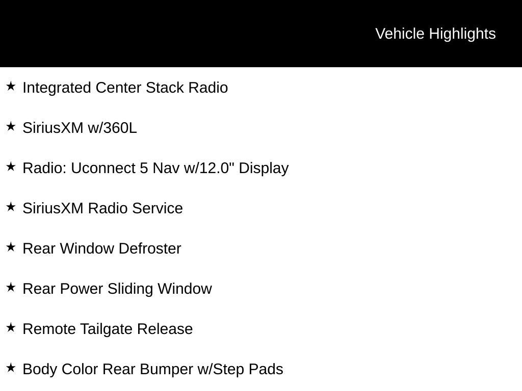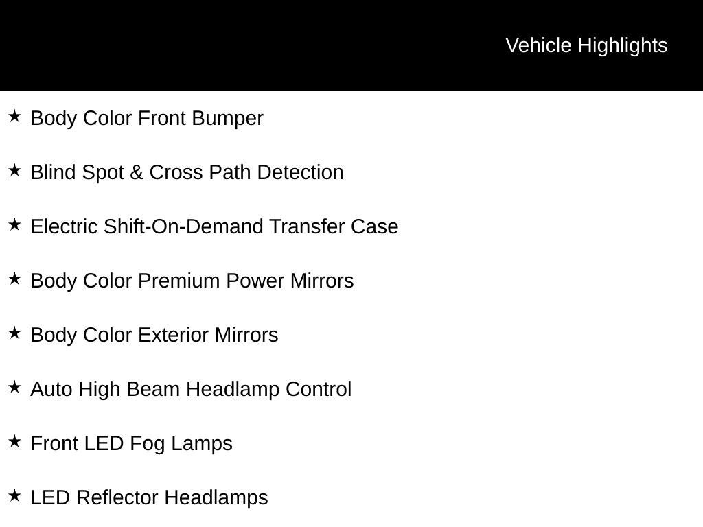 - Wheels: 20" x 9" Premium Painted w/Inserts