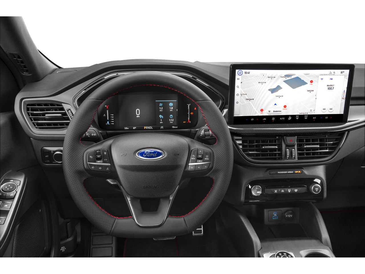 CARFAX One-Owner. Iconic Silver Metallic 2024 Ford Escape 4D Sport Utility ST-Line AWD 8-Speed Automatic 1.5L EcoBoost 26/32 City/Highway MPG Clean CARFAX.Adaptive Cruise Control w/Stop-and-Go, Alloy wheels, Cold Weather Package, Connected Navigation, Equipment Group 300A, Ford Co-Pilot360 Assist+, Heated Front Row Seats, Heated Sideview Mirrors, Heated Steering Wheel, Power Liftgate, Rear Parking Sensor, Rear-View Camera, Remote keyless entry, Remote Starter System, Speed Sign Recognition, Steering wheel mounted audio controls, SYNC 4 w/Enhanced Voice Recognition, Tech Pack #1, Traction control.This Escape is well equipped with Cold Weather Package (Heated Front Row Seats, Heated Sideview Mirrors, Heated Steering Wheel, and Remote Starter System), Equipment Group 300A, Tech Pack #1 (Adaptive Cruise Control w/Stop-and-Go, Connected Navigation, Ford Co-Pilot360 Assist+, Rear Parking Sensor, Rear-View Camera, Speed Sign Recognition, and SYNC 4 w/Enhanced Voice Recognition), Alloy wheels, Power Liftgate, Remote keyless entry, Steering wheel mounted audio controls, Traction control, 3.81 Axle Ratio, 4-Wheel Disc Brakes, 6 Speakers, ABS brakes, Air Conditioning, AM/FM radio: SiriusXM, AM/FM Stereo, Auto High-beam Headlights, Automatic temperature control, Brake assist, Bumpers: body-color, Compass, Delay-off headlights, Driver door bin, Driver vanity mirror, Dual front impact airbags, Dual front side impact airbags, Electronic Stability Control, Emergency communication system: SYNC 4 911 Assist, Exterior Parking Camera Rear, FordPass Connect, Four wheel independent suspension, Front anti-roll bar, Front Bucket Seats, Front Center Armrest, Front dual zone A/C, Front License Plate Bracket, Front reading lights, Fully automatic headlights, Illuminated entry, Knee airbag, Low tire pressure warning, Occupant sensing airbag, Outside temperature display, Overhead airbag, Overhead console, Panic alarm, Passenger door bin, Passenger vanity mirror, Power door mirrors, Power driver seat, Power steering, Power windows, Radio data system, Rear anti-roll bar, Rear reading lights, Rear seat center armrest, Rear window defroster, Rear window wiper, Roof rack: rails only, Speed control, Speed-sensing steering, Speed-Sensitive Wipers, Split folding rear seat, Spoiler, Sport steering wheel, SYNC 4, Tachometer, Telescoping steering wheel, Tilt steering wheel, Trip computer, Variably intermittent wipers, Vinyl/Cloth Front Sport Contour Bucket Seats, and Wheels: 18 Rock Metallic Painted Aluminum.