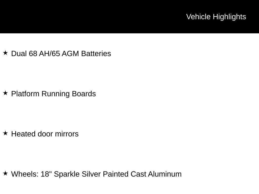 - Wheels: 18" Sparkle Silver Painted Cast Aluminum