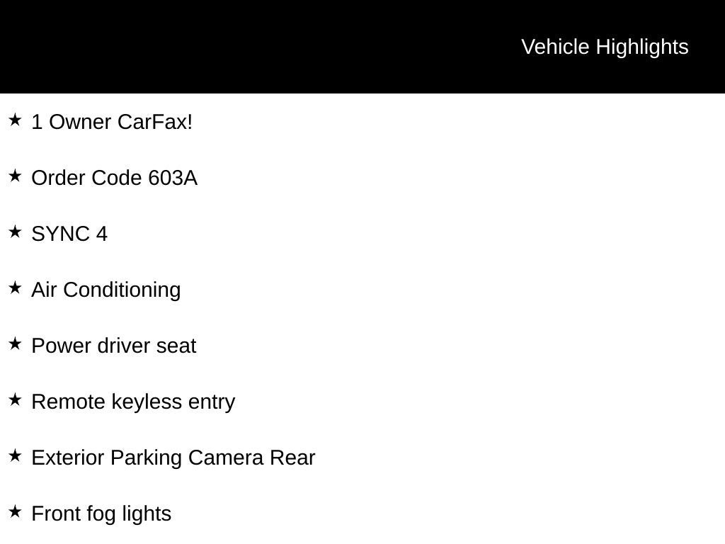 - SYNC 4 -inc: 8" LCD capacitive touchscreen w/swipe capability, wireless phone connection, cloud connected, AppLink w/app catalog, 911 Assist, Apple CarPlay and Android Auto compatibility and digital owner's manual
