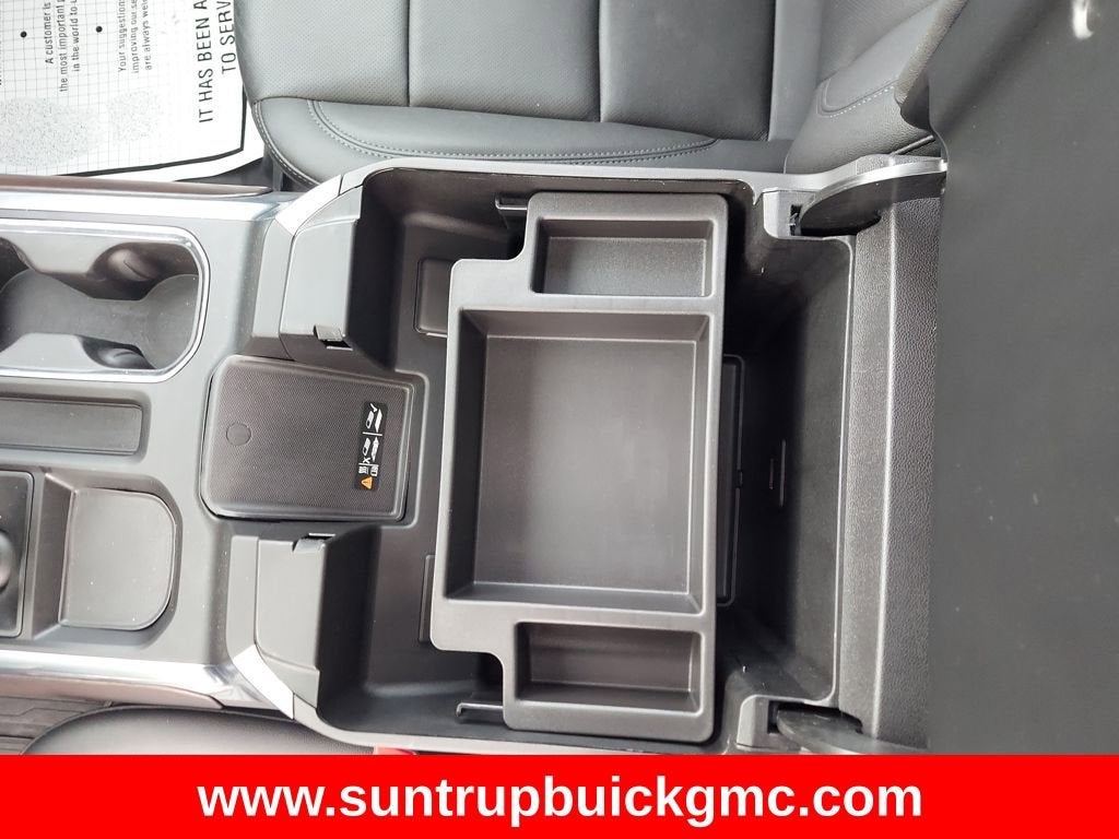 This Sierra 1500 is well equipped with High Capacity Suspension Package, SLT Convenience Package (2 Charge/Data USB Ports Inside Center Console, Electronic Precision Shift, Floor-Mounted Center Console, Front Bucket Seats, Power Rake & Telescoping Steering Column, Premium Bose 7-Speaker Sound System, Ventilated Driver & Front Passenger Seats, and Wireless Charging), SLT Preferred Package (Adaptive Cruise Control, Heated 2nd Row Outboard Seats, Power Sliding Rear Window w/Rear Defogger, and Universal Home Remote), SLT Premium Package (20 Polished Aluminum Wheels and Chrome Wheel To Wheel Assist Steps), Trailering Package (Hitch Guidance), Preferred Equipment Group 4SA (Remote Vehicle Starter System, Steering Wheel Audio Controls, 120-Volt Bed Mounted Power Outlet, 120-Volt Interior Power Outlet, 170 Amp Alternator, 2 Charge/Data USB Ports, 2 Type-C Charge-Only Rear USB Ports, 6-Speaker Audio System Feature, Auto-Locking Rear Differential, Auxiliary External Transmission Oil Cooler, Chrome Header & Chrome Grille Insert Bars, Color-Keyed Carpeting Floor Covering, Deep-Tinted Glass, Electric Rear-Window Defogger, Front Frame-Mounted Black Recovery Hooks, Front Rain-Sensing Wipers, GMC Connected Access Capable, HD Rear Vision Camera, Keyless Open & Start, LED Cargo Area Lighting, Manual Tilt-Wheel & Telescoping Steering Column, OnStar & GMC Connected Services Capable, Perimeter Lighting, Power Door Locks, Power Front Passenger Windows w/Express Up/Down, Power Front Windows w/Driver Express Up/Down, Power Rear Windows w/Express Down, Push Button Start, Rear Wheelhouse Liners, SiriusXM w/360L, Theft Deterrent System (Unauthorized Entry), and Wi-Fi Hotspot Capable), Standard Suspension Package, 10-Way Power Driver Seat Adjuster w/Lumbar, 10-Way Power Passenger Seat Adjuster w/Lumbar, Engine Block Heater, Heated Driver & Front Outboard Passenger Seating, Heated steering wheel, Navigation System, Perf Leather-Appointed Front Outboard Seat Trim, Security system, Spray-On Pickup Bedliner w/GMC Logo, Steering wheel mounted audio controls, 220 Amp Alternator, 3.23 Rear Axle Ratio, 4-Wheel Disc Brakes, 6 Speakers, ABS brakes, Air Conditioning, Alloy wheels, AM/FM radio: SiriusXM with 360L, Apple CarPlay/Android Auto, Auto High-beam Headlights, Auto-dimming door mirrors, Auto-dimming Rear-View mirror, Automatic Emergency Braking, Automatic temperature control, Brake assist, Buckle to Drive, Bumpers: chrome, Compass, Delay-off headlights, Driver door bin, Driver Memory, Driver vanity mirror, Dual front impact airbags, Dual front side impact airbags, Electronic Stability Control, Following Distance Indicator, Forward Collision Alert, Front 40/20/40 Split-Bench Seat, Front anti-roll bar, Front Center Armrest w/Storage, Front du