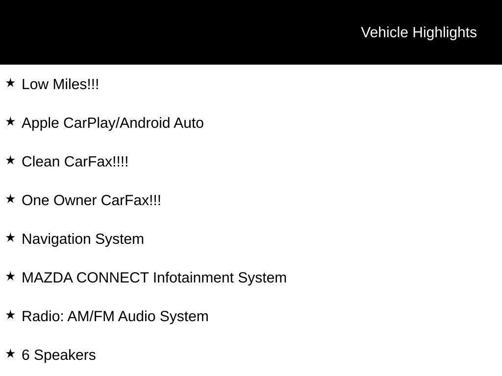 Recent Arrival! Odometer is 7412 miles below market average! Jet Black Mica 2024 Mazda CX-30 2.5 S Select Sport AWD 6-Speed Automatic SKYACTIV® 2.5L 4-Cylinder DOHC 16V Low Miles!!!, Apple CarPlay/Android Auto, Clean CarFax!!!!, One Owner CarFax!!!, CX-30 2.5 S Select Sport, 4D Sport Utility, AWD, Black w/Leatherette Seat Trim, 6 Speakers, AppLink/Apple CarPlay and Android Auto, Auto High-beam Headlights, Automatic temperature control, Brake assist, Electronic Stability Control, Exterior Parking Camera Rear, Fully automatic headlights, Heated door mirrors, Leatherette Seat Trim, MAZDA CONNECT Infotainment System, Navigation System, Radio: AM/FM Audio System, Rain sensing wipers, Remote keyless entry, Speed control, Speed-sensing steering, Steering wheel mounted audio controls, Traction control, Turn signal indicator mirrors, Variably intermittent wipers, Wheels: 18 x 7J Aluminum Alloy.
