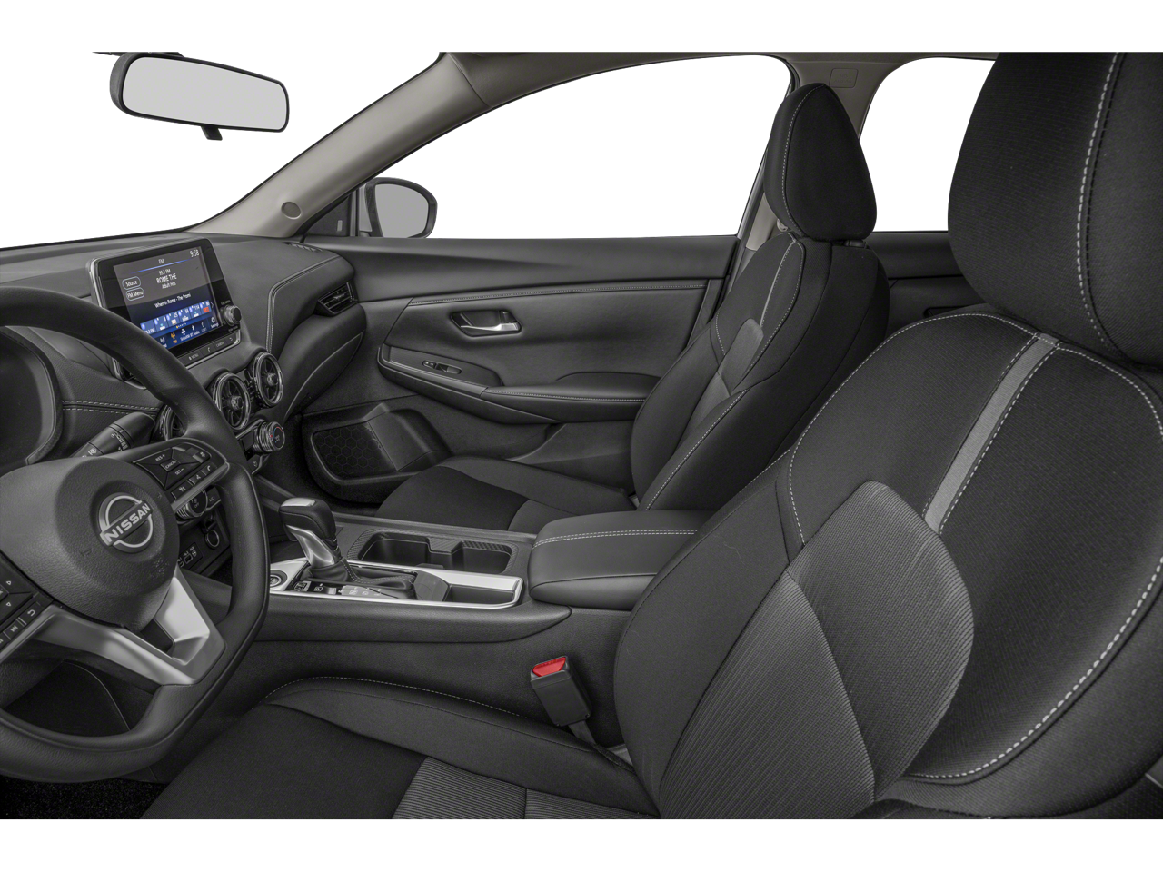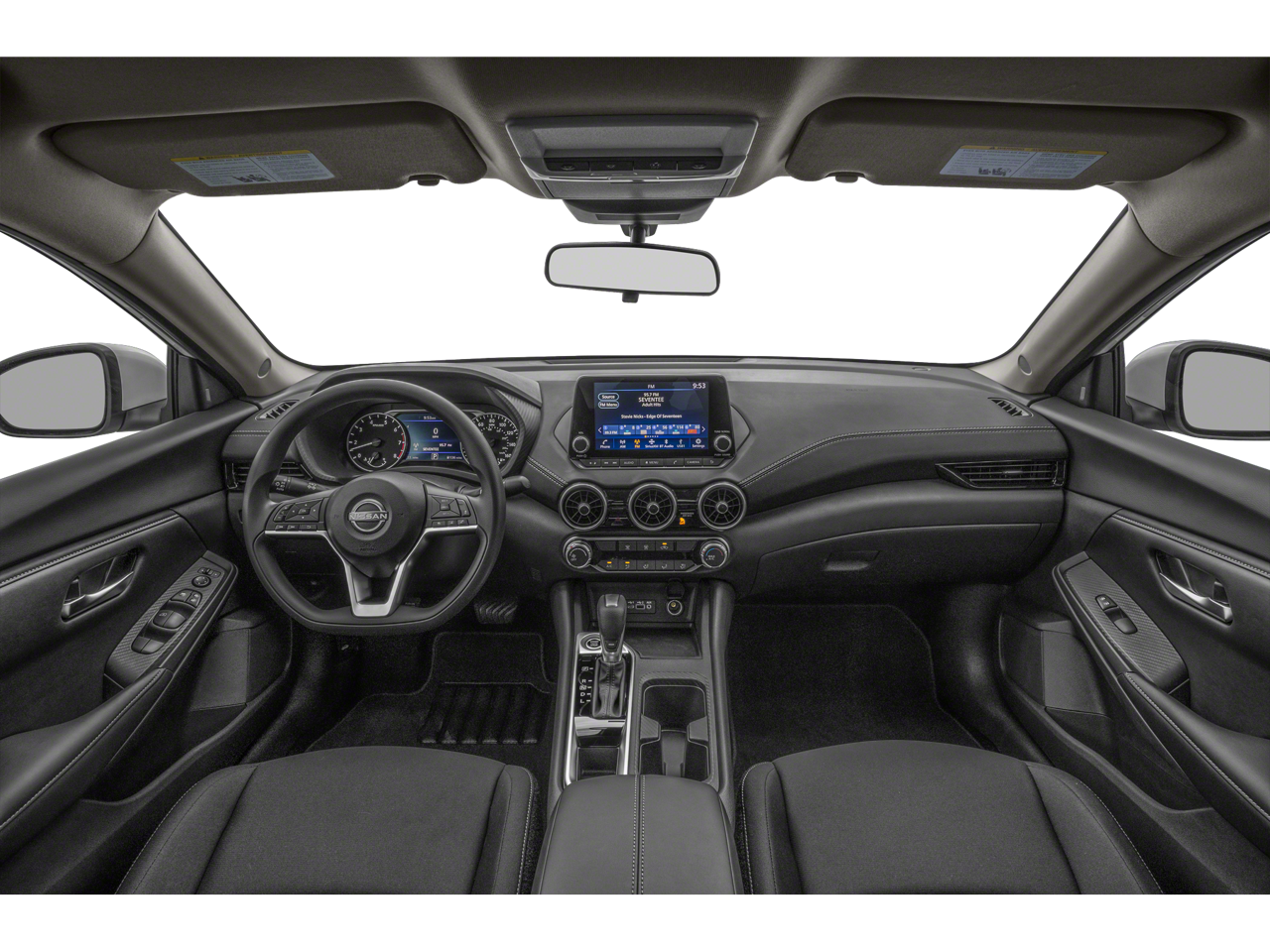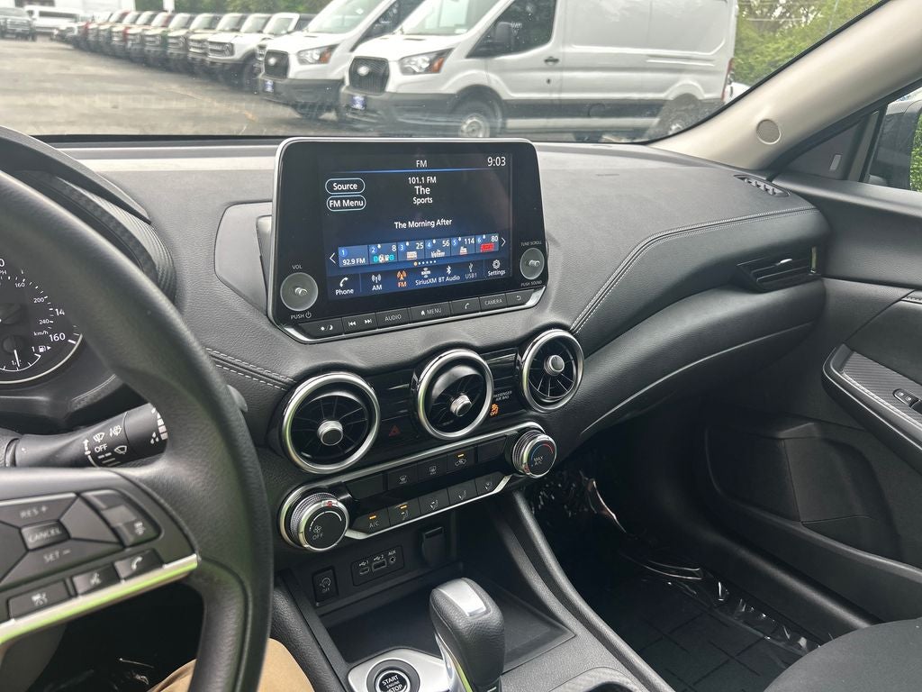 The interior of this Sentra SV is designed with your comfort and convenience in mind. Enjoy the convenience of Apple CarPlay and Android Auto, allowing you to seamlessly integrate your smartphone and access your favorite apps on the go. The Blind Spot Warning system and Rear Parking Sensors provide added peace of mind, while the leather-wrapped steering wheel and upgraded cloth seat trim elevate the driving experience.