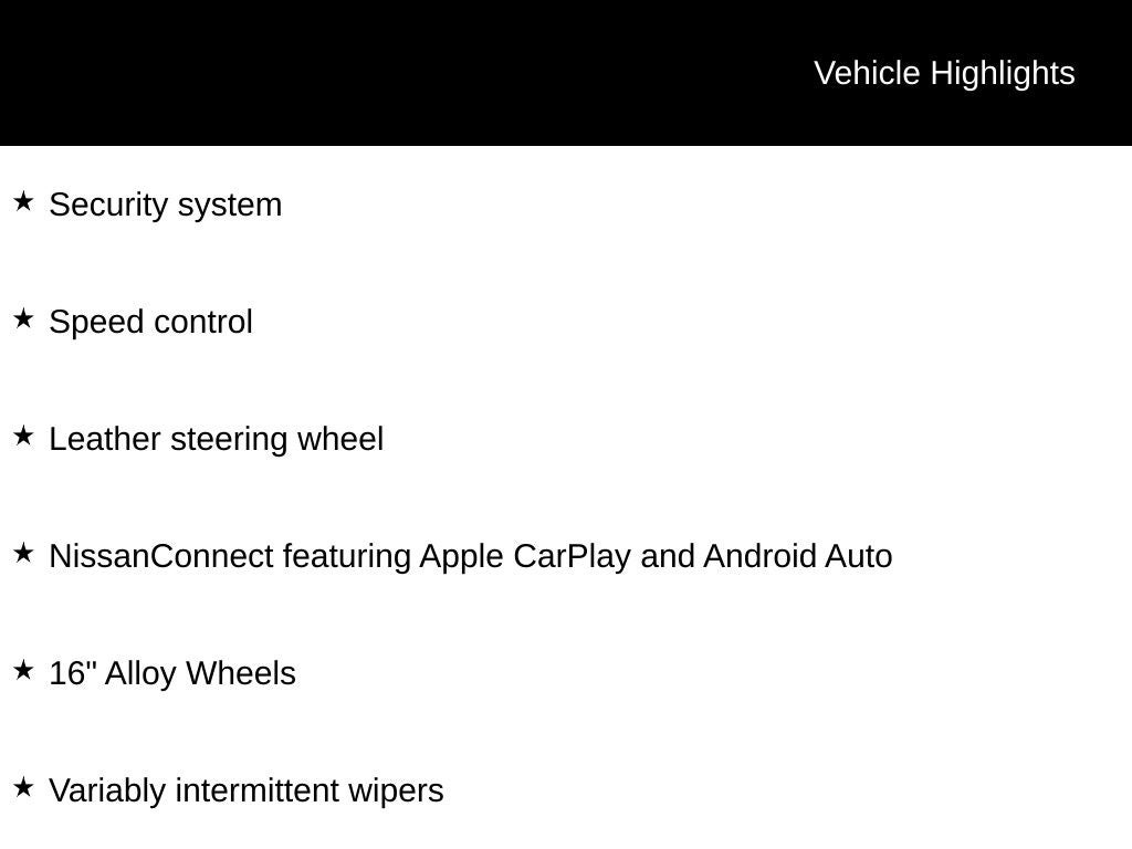 - NissanConnect featuring Apple CarPlay and Android Auto