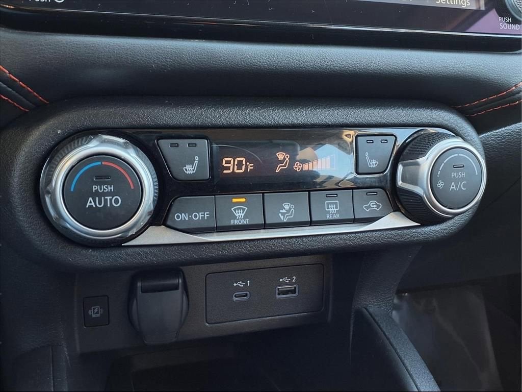 This Versa is well equipped with Alloy wheels, Apple CarPlay/Android Auto, Blind Spot Warning, Remote keyless entry, Speed control, Steering wheel mounted audio controls, 17 Aluminum Alloy Wheels, 6 Speakers, ABS brakes, Air Conditioning, AM/FM radio: SiriusXM, Auto High-beam Headlights, Automatic temperature control, Brake assist, Bumpers: body-color, Carpeted Floor Mats & Trunk Mat (5-Piece Set), Delay-off headlights, Driver door bin, Driver vanity mirror, Dual front impact airbags, Dual front side impact airbags, Electronic Stability Control, Emergency communication system, Front anti-roll bar, Front Bucket Seats, Front Center Armrest, Front reading lights, Front wheel independent suspension, Fully automatic headlights, Heated door mirrors, Heated Front Bucket Seats, Heated front seats, Illuminated entry, Knee airbag, Leather steering wheel, Low tire pressure warning, Occupant sensing airbag, Outside temperature display, Overhead airbag, Panic alarm, Passenger door bin, Passenger vanity mirror, Power door mirrors, Power steering, Power windows, Radio data system, Radio: AM/FM Audio System, Rear Parking Sensors, Rear side impact airbag, Rear window defroster, Split folding rear seat, Spoiler, SR Fabric Seat Trim, Tachometer, Telescoping steering wheel, Tilt steering wheel, Traction control, Trip computer, Turn signal indicator mirrors, and Variably intermittent wipers.