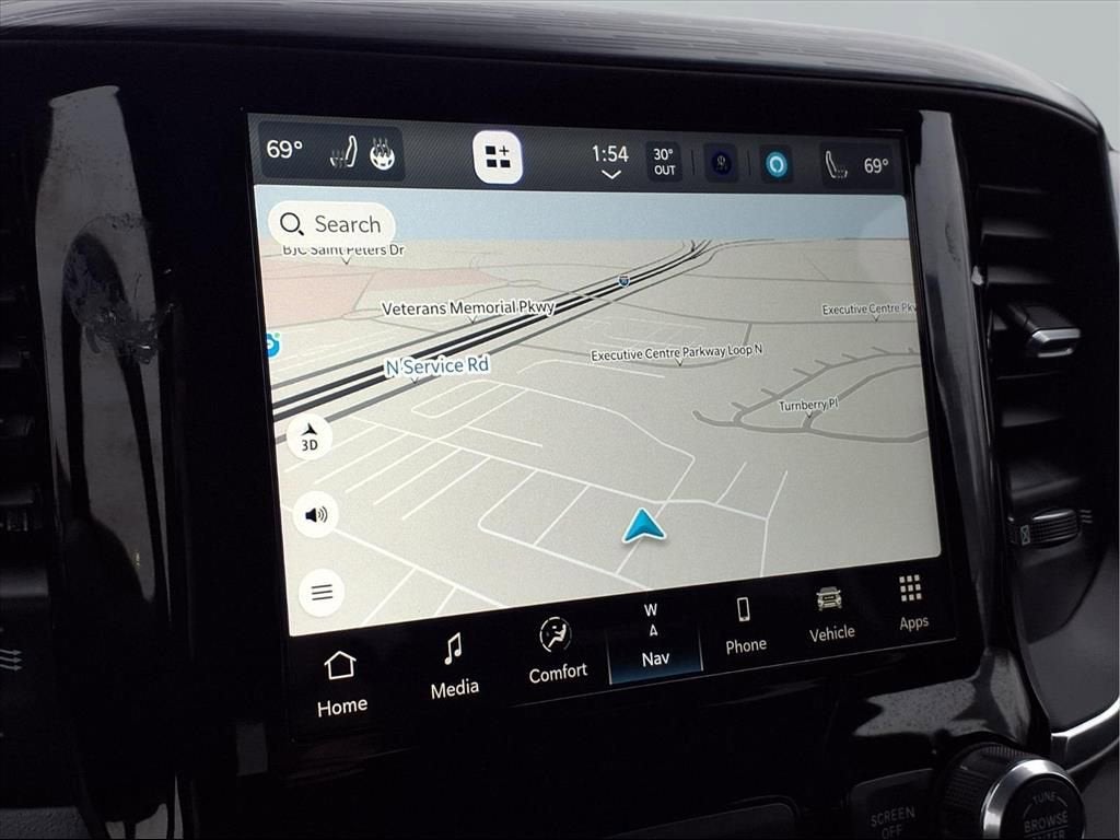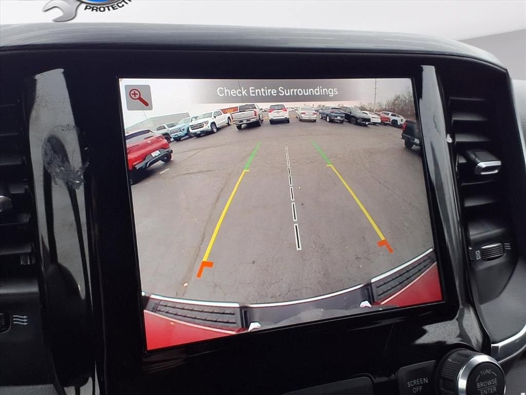This 1500 is well equipped with Quick Order Package 27H Laramie, Alloy wheels, Heated Front Seats, Heated Steering Wheel, Memory seat, Navigation System, Remote keyless entry, Steering wheel mounted audio controls, 10 Speakers, 3 Rear Seat Head Restraints, 3.21 Rear Axle Ratio, 4 Way Front Headrests, 4-Wheel Disc Brakes, 48V Belt Starter Generator, 4G LTE Wi-Fi Hot Spot, ABS brakes, Air Conditioning, AM/FM radio: SiriusXM with 360L, Apple CarPlay, Apple CarPlay/Android Auto, Audio memory, Auto-dimming door mirrors, Auto-Dimming Exterior Driver Mirror, Auto-dimming Rear-View mirror, Automatic temperature control, Brake assist, Bumpers: chrome, Chrome Exterior Mirrors, Compass, Connected Travel & Traffic Services, Connectivity - US/Canada, Convex Wide-Angle Exterior Mirror Insert, Delay-off headlights, Driver door bin, Driver Seat Memory, Driver vanity mirror, Dual front impact airbags, Dual front side impact airbags, Electronic Stability Control, Exterior Mirrors Courtesy Lamps, Exterior Mirrors w/Heating Element, Exterior Mirrors w/Memory, Exterior Mirrors w/Supplemental Signals, For Details, Visit DriveUconnect.com, For More Info, Call 800-643-2112, Front anti-roll bar, Front Center Armrest w/Storage, Front dual zone A/C, Front fog lights, Front License Plate Bracket, Front reading lights, Front Seat Back Map Pockets, Front wheel independent suspension, Fully automatic headlights, Garage door transmitter, Global Telematics Box Module (TBM), Google Android Auto, GPS Navigation, HD Radio, Heated door mirrors, Heated front seats, Heated steering wheel, Illuminated entry, Integrated Voice Command w/Bluetooth®, Leather steering wheel, Leather Trim 40/20/40 Bench Seat, Low tire pressure warning, Manufacturer's Statement of Origin, Occupant sensing airbag, Outside temperature display, Overhead airbag, Overhead console, Panic alarm, ParkView Rear Back-Up Camera, Passenger door bin, Passenger vanity mirror, Power 2-Way Driver Lumbar Adjust, Power 2-Way Passenger Lumbar Adjust, Power 8-Way Driver & Passenger Seats, Power door mirrors, Power driver seat, Power passenger seat, Power steering, Power windows, Power-Folding Mirrors, Radio data system, Radio: Uconnect 5 Nav w/8.4 Display, RAM Grille Badge - Chrome, Rear 60/40 Folding Seat, Rear anti-roll bar, Rear seat center armrest, Rear step bumper, Security system, SiriusXM Radio Service, SiriusXM w/360L, Speed control, Split folding rear seat, Tachometer, Telescoping steering wheel, Tilt steering wheel, Traction control, Trip computer, Turn signal indicator mirrors, USB Host Flip, Variably intermittent wipers, Ventilated Front Seats, Ventilated front seats, Voltmeter, Wheels: 18 x 8 Aluminum Base Painted, and Wheels: 20 x 9 Premium Paint/Polished.