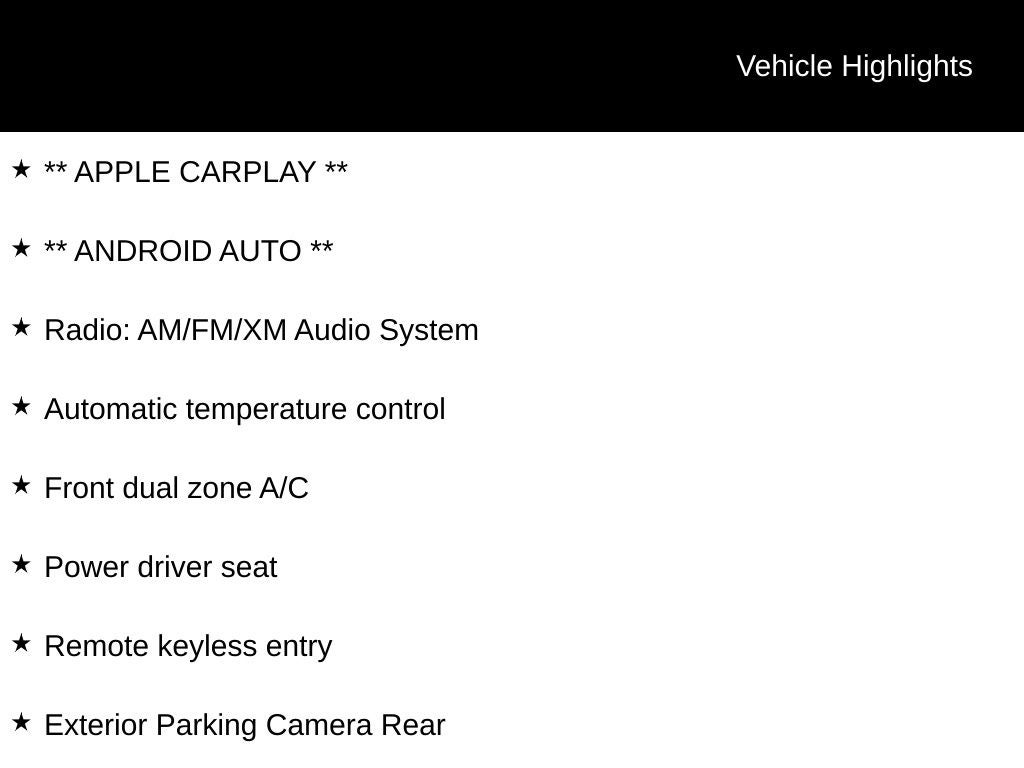 - Radio w/Seek-Scan, Clock, Speed Compensated Volume Control, Aux Audio Input Jack, Steering Wheel Controls, Voice Activation, Radio Data System and External Memory Control