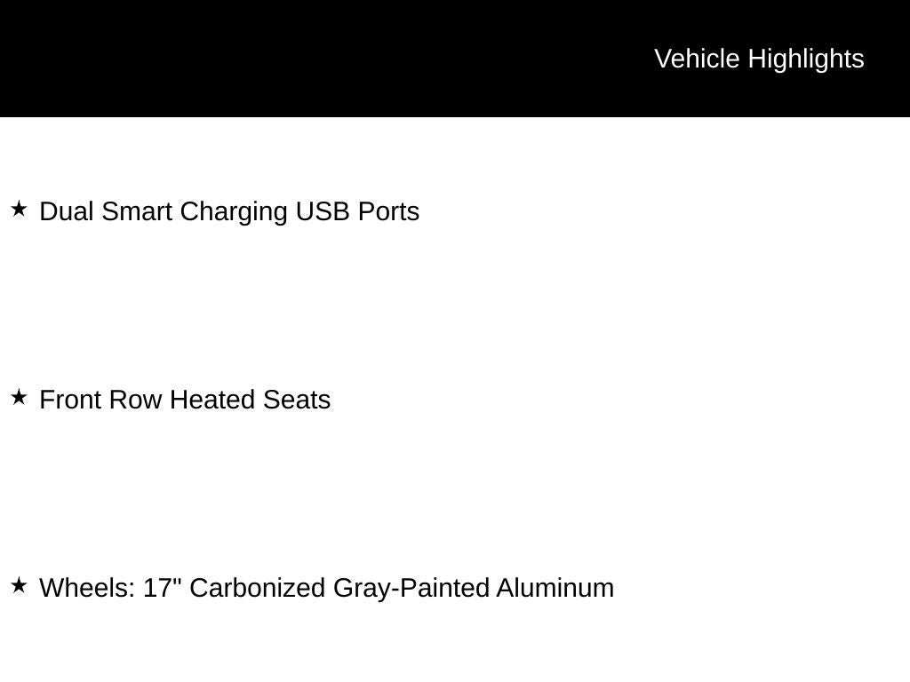 - Wheels: 17" Carbonized Gray-Painted Aluminum