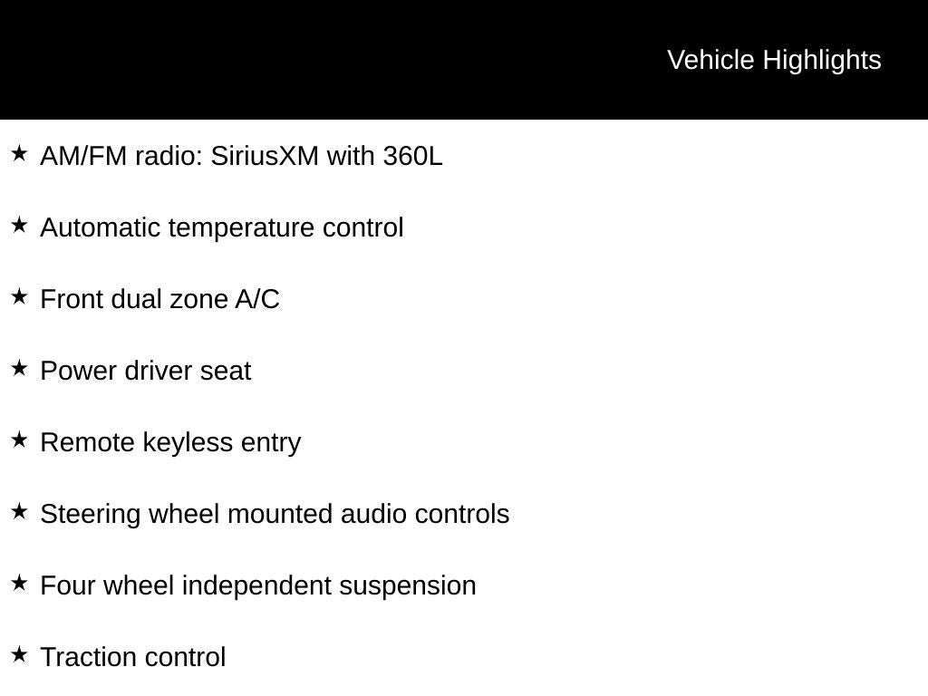 - AM/FM radio: SiriusXM with 360L