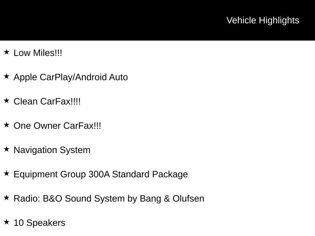 - Radio: B&O Sound System by Bang & Olufsen