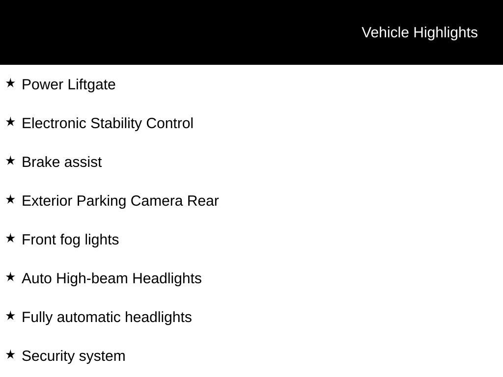- 4-Wheel Disc Brakes w/4-Wheel ABS, Front And Rear Vented Discs, Brake Assist, Hill Descent Control, Hill Hold Control and Electric Parking Brake
